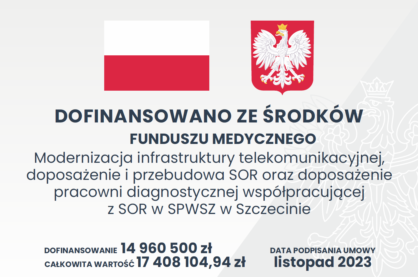 Trwająca przeprowadzka SOR oznacza zakończenie wieloetapowej inwestycji pod nazwą „Modernizacja infrastruktury telekomunikacyjnej, doposażenie i przebudowa SOR oraz doposażenie pracowni diagnostycznej współpracującej z SOR w SPWSZ w Szczecinie w lok. Arkońskiej 4”, której łączny koszt wyniósł ok. 17,4 mln zł. Blisko 15 mln zł stanowiło dofinasowanie z Funduszu Medycznego. Pozostała część (ok. 2,4 mln zł) to środki własne szpitala.