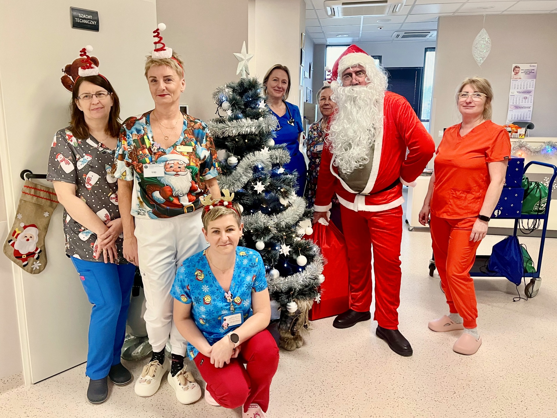 Choć Mikołajki dopiero jutro, Święty postanowił zrobić małą niespodziankę i pojawił się u naszych małych pacjentów już dziś. Dzieci – zarówno te najmłodsze, jak i nieco starsze – przyjęły go z ogromną radością. Świąteczną atmosferę podkreślił również personel, który z tej okazji przywdział odświętne mundurki.