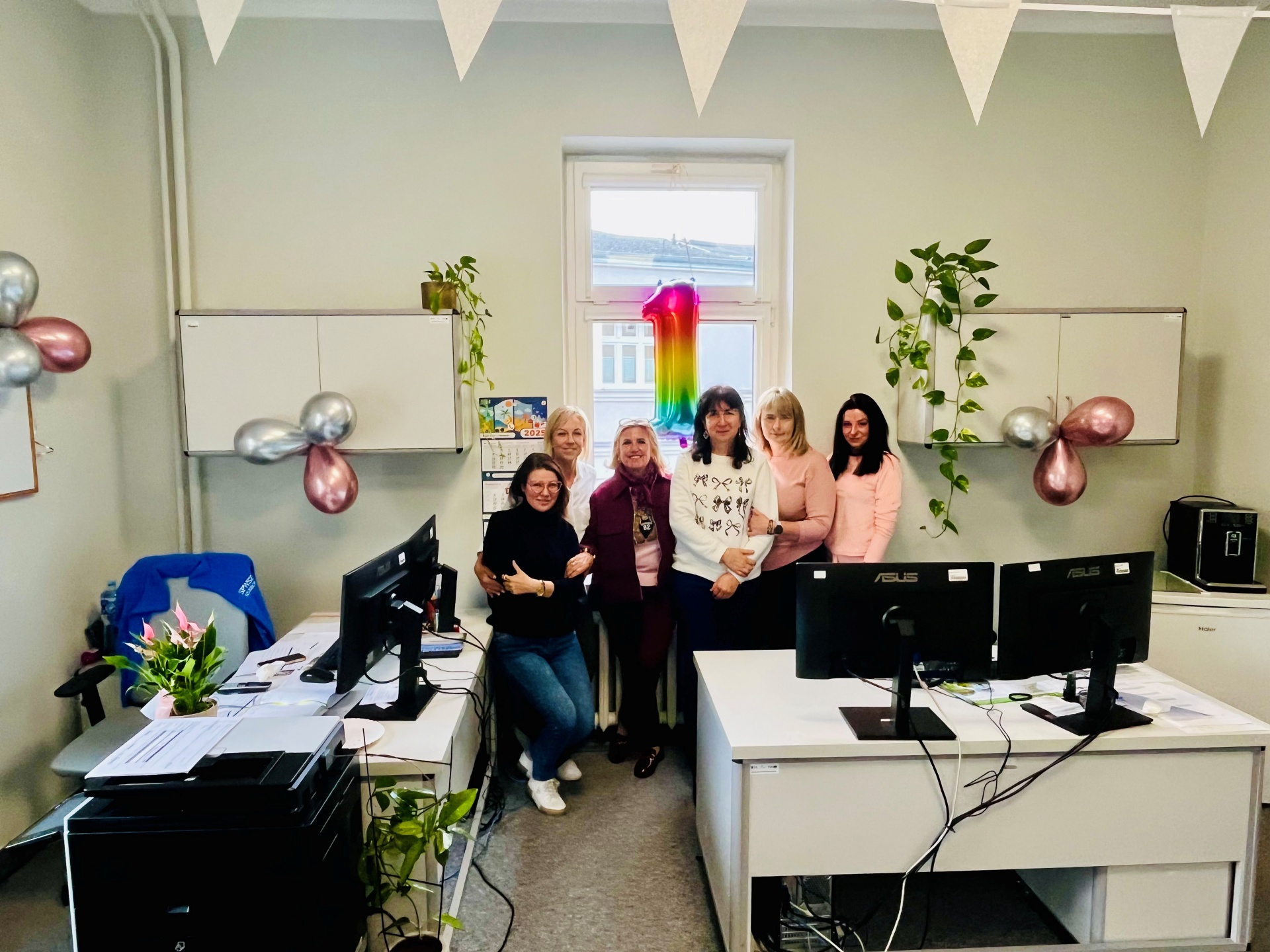 fot. Zespół Centralnej Rejestracji Telefonicznej z koordynatorką Joanną Lokajczyk-Sidorowicz (druga z lewej) i zastępczynią pielęgniarki naczelnej dr Sylwią Sołowiej (trzecia z lewej)