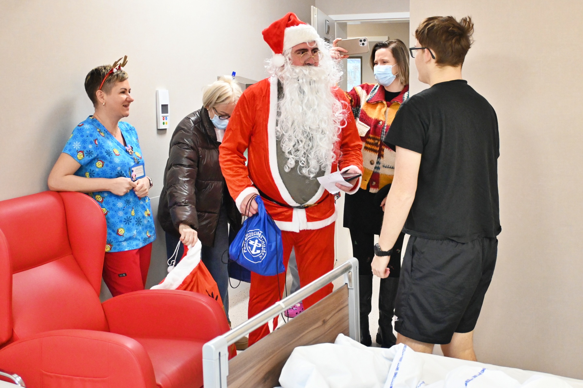 Choć Mikołajki dopiero jutro, Święty postanowił zrobić małą niespodziankę i pojawił się u naszych małych pacjentów już dziś. Dzieci – zarówno te najmłodsze, jak i nieco starsze – przyjęły go z ogromną radością. Świąteczną atmosferę podkreślił również personel, który z tej okazji przywdział odświętne mundurki.